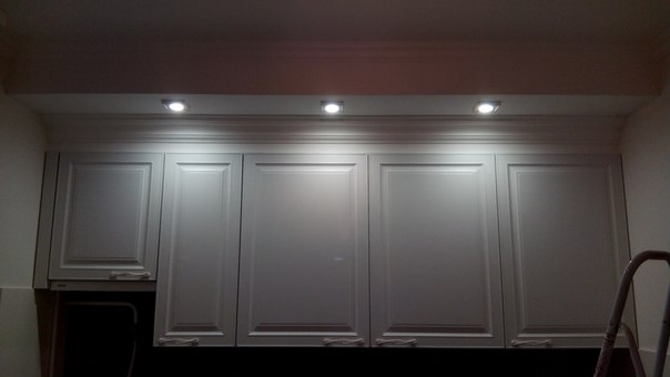 Монтаж(врізка) у гіпсокартон світильників з Led лампами 7w(підсвітка кухні)